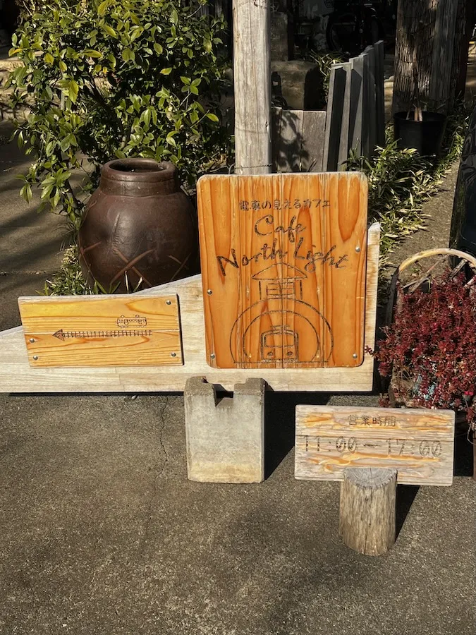 3つ目の案内看板をすぎると、少し日常から離れた癒しの空間が現れました! こちらが『電車の見えるカフェ North Light』さんです!