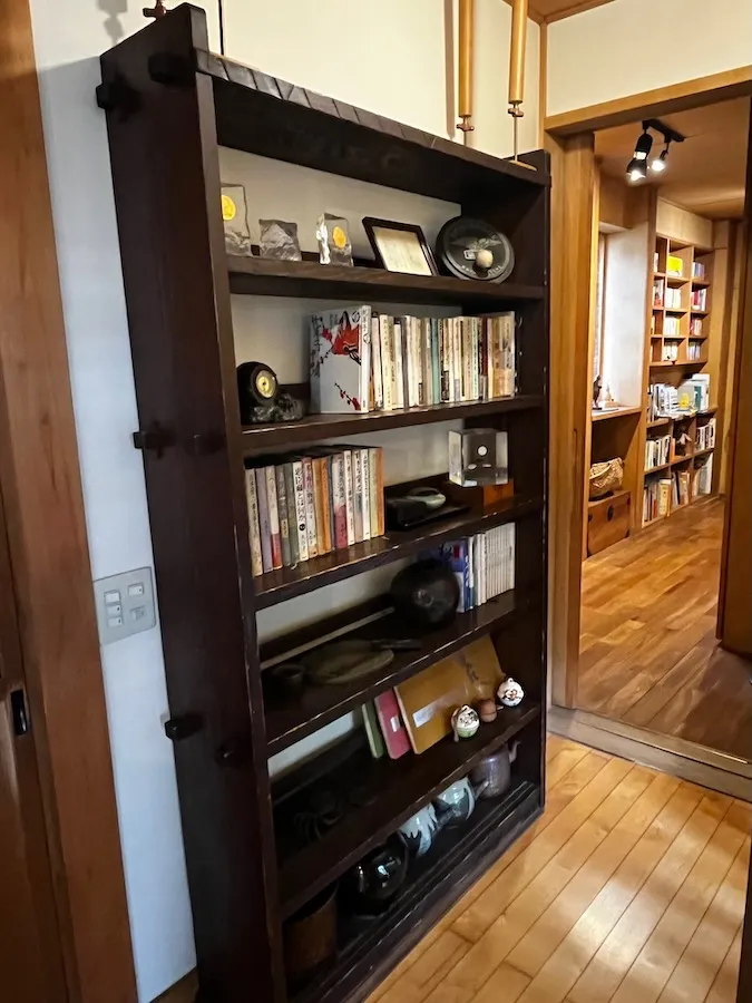 廊下を進んでいくと、まず目に入って来るのが大きな本棚。