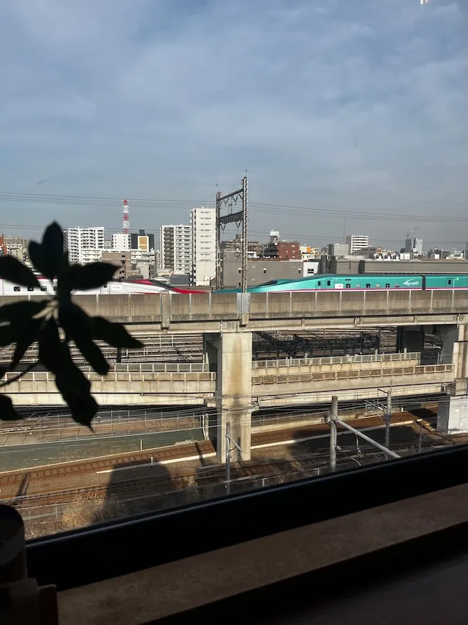 せっかくなので、電車を眺められる窓に面したカウンター席へ。 本当に眺めがいいんです! 「ノースライト」の店名の通り、北側に大きく開かれた窓からは暖かな日差しが。