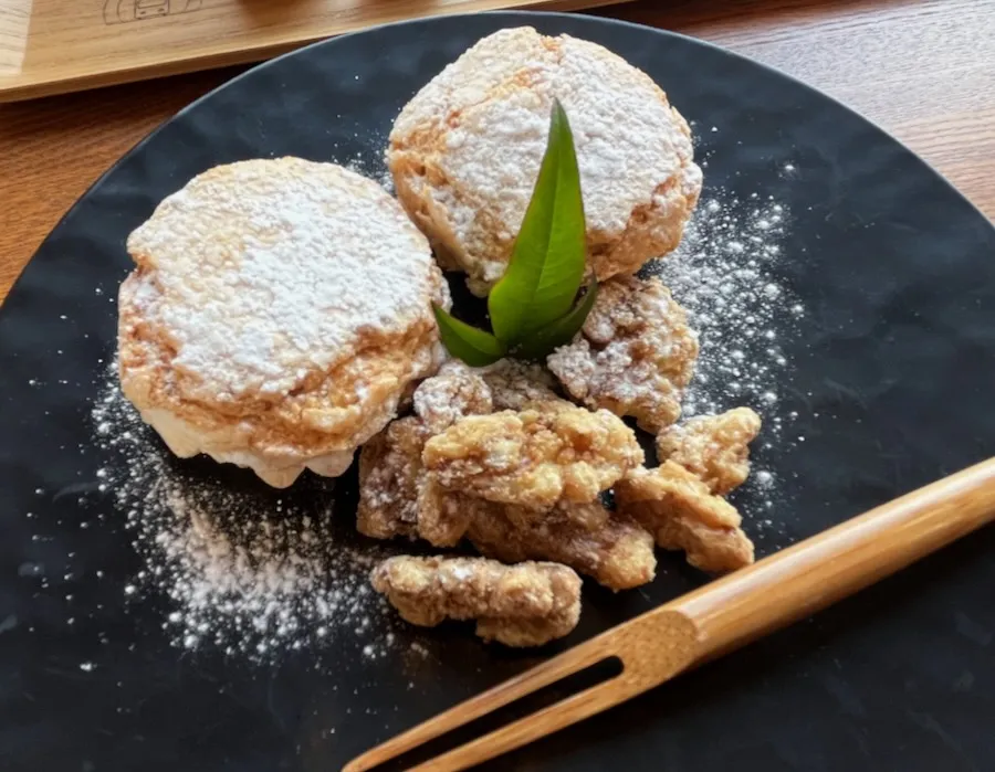 手前に乗っているのは胡桃のキャラメリゼです。どちらも素朴な甘さにほっこりしました。