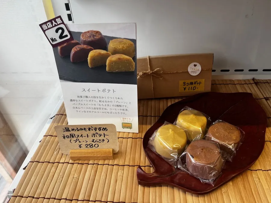 茨城県産紅はるかを使った「プレーン」と、千葉県産パープルスウィートを使った 「むらさき」の2種類。どちらも白あんベースの上品な甘さですが、「むらさき」は、 はちみつのようなまろやかな甘さが特徴。トースターで少し温めると、 より甘さと香りが感じられるんだそうです。