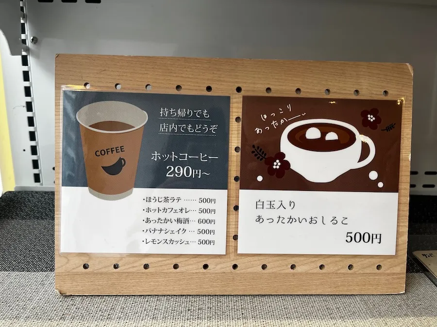 美味しそうな和菓子をみていたら、わたしもなにか頂きたくなってきました。 イートインスペースでおやつの時間にしようと思います! 和菓子屋さんでコーヒーやその他飲み物も飲めるなんて!
