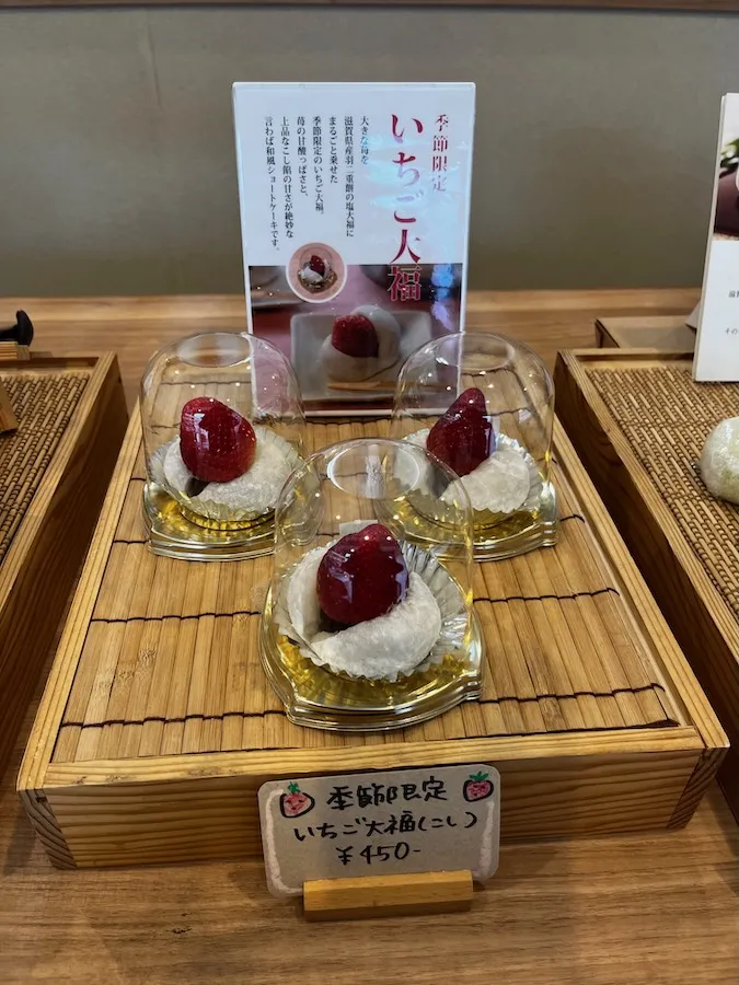 やわらかい羽二重餅の塩こし大福に、大きないちごがのったボリューミーな大福は、 季節限定品。自分へのご褒美に買っていきたいですね。