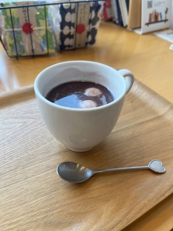 人気No.1のわらび餅と、出来立てを食べられるあんバターサンドとも悩みましたが、 冬だしせっかくなので、おしるこに!