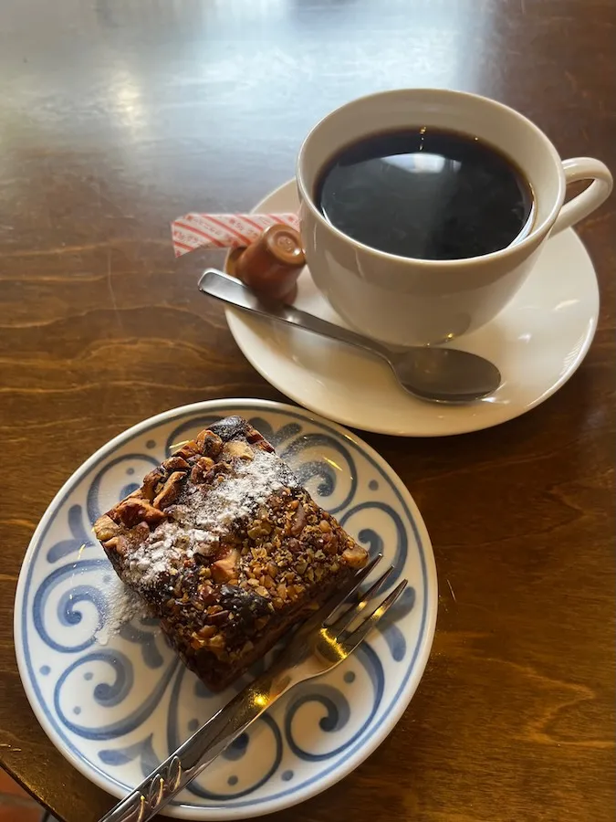 悩みに悩んで、「チョコブラウニー」に決めました! お供のコーヒーはマイルド・ブレンド・コーヒーです。