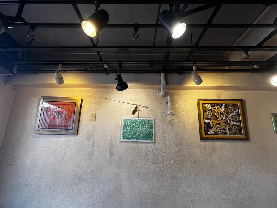 両脇はマスターが気に入ってアボリジニで購入された絵なんだそう。 娘さんの美的センスが素晴らしいですし、お店に飾っているマスターにもほっこり。