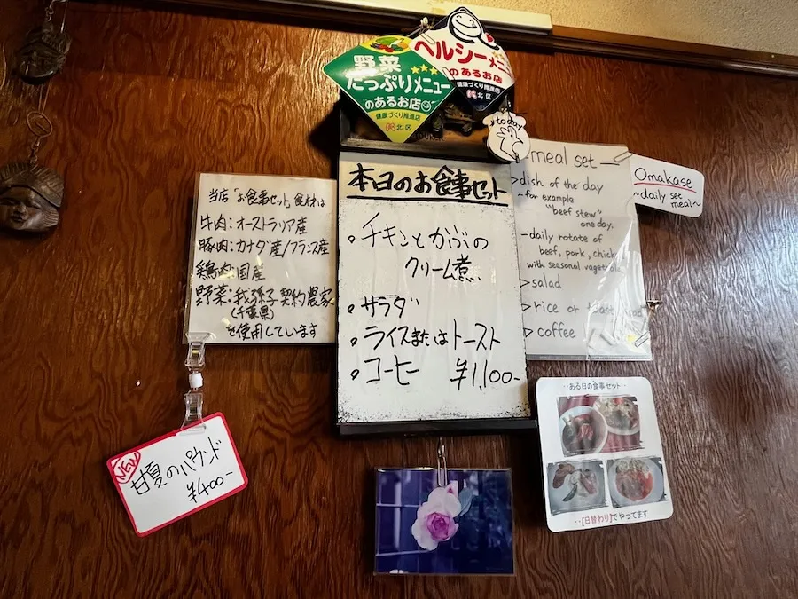手書きの「本日のメニュー」が趣深いですね。