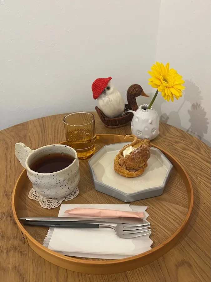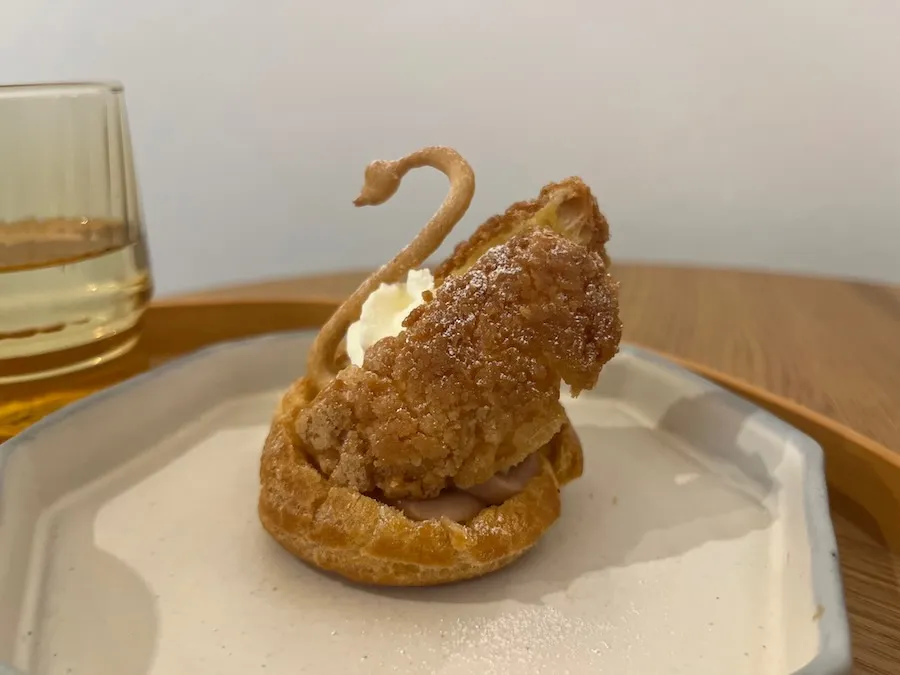 人生で一度はお目にかかりたく、食べてみたかったスワンシューです!造形美!! 私が訪れた際にも、カメラを片手にした女性の方が 可愛らしいプレートを大切そうにお写真に収めていましたが、 これはパシャパシャとたくさん収めておきたい気持ちが分かりますね。