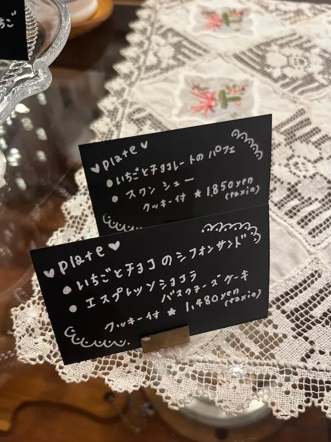 伺った日のメニューはこちらです。私が伺ったのが2月のバレンタイン時期でしたので、 バレンタインモチーフのスイーツがお出迎え。