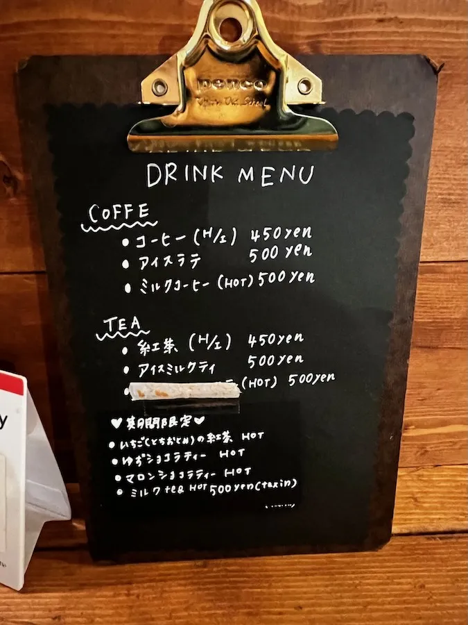 手書きのメニューもキュンポイントが高いです(心がときめいていくポイントです)。