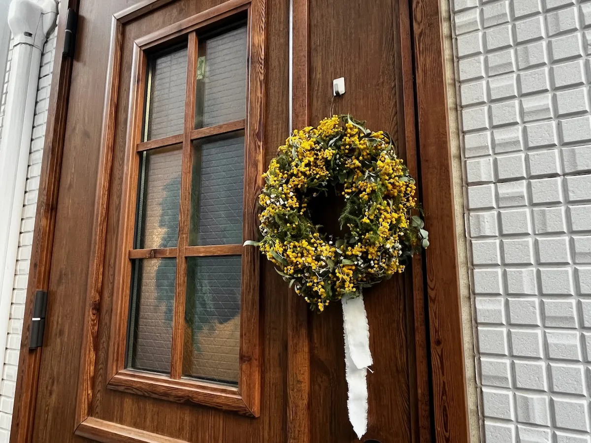 可愛いリースがかかったドアを開けてお店の中へ。 長畑さんが「いつか自分のお店を持ちたい」という夢を叶えられた可愛らしい店内。