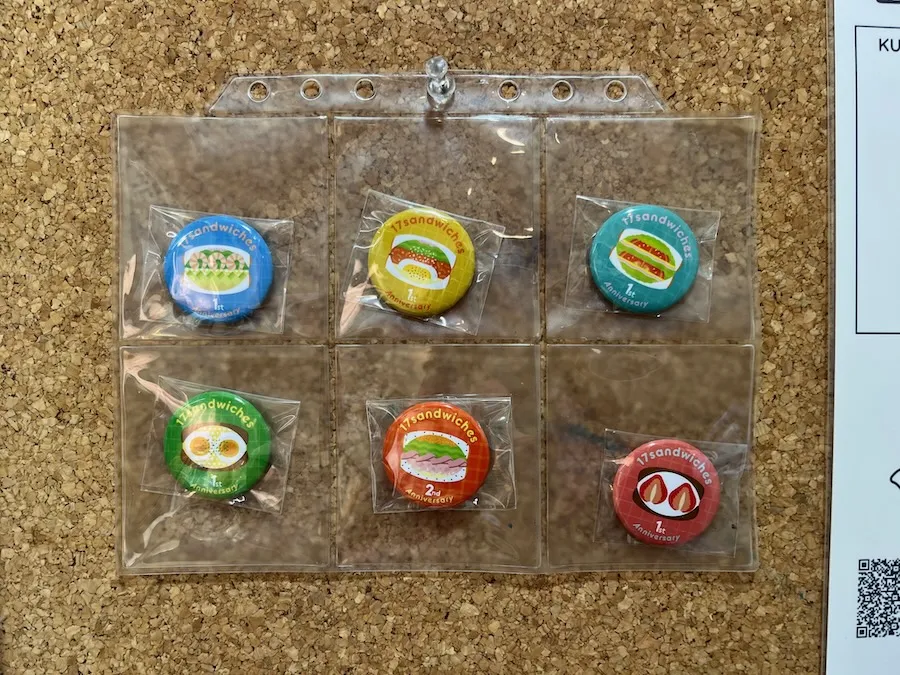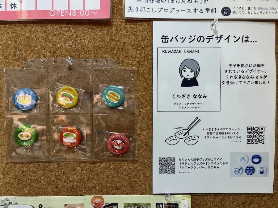 こちらのかわいらしい缶バッチはお店の2周年を記念して作られたもの。 デザインをされたのは北区王子を拠点に活動されている『くわざきななみ』さん。