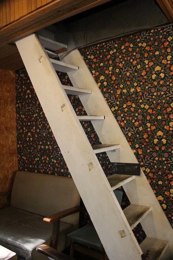 (アメリカに親戚はいません) (梯子の先はスタッフオンリーです、上がらないようにお気をつけください)