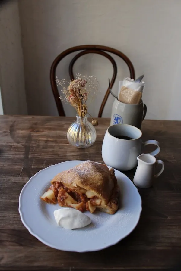 インパクトが大きくて、思わず頼んでしまいました! 食べてみると、パイの中のりんごのフィリングは酸味が強く、 添えられたクリームと良く合います。