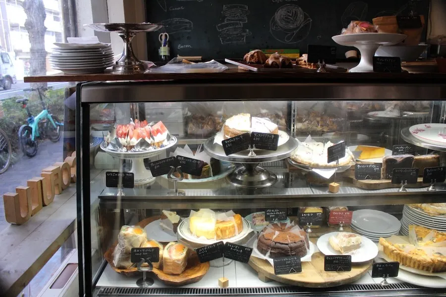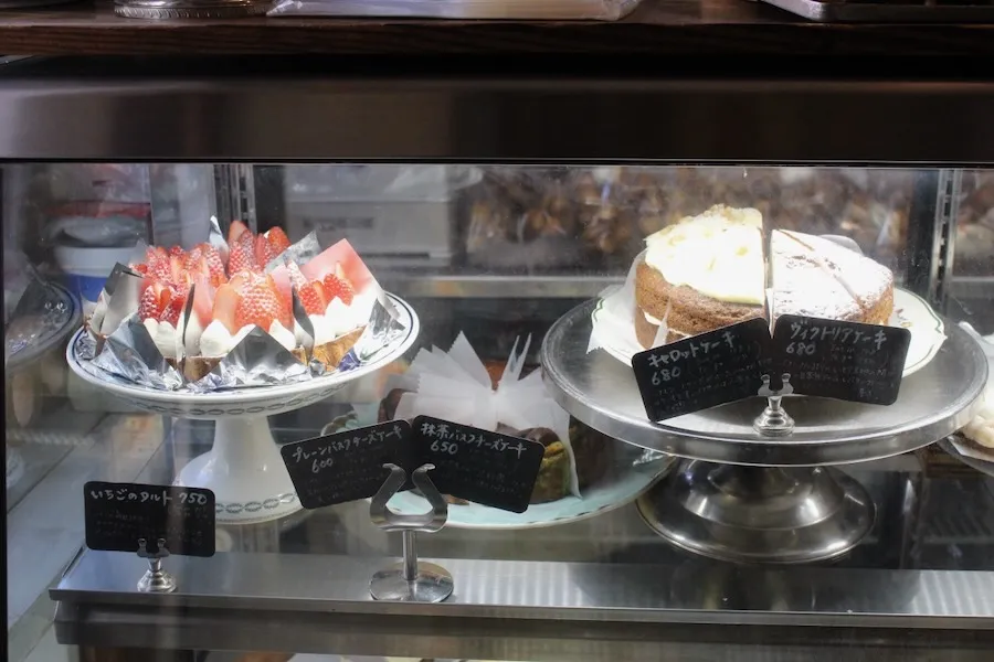 そして、ここ最近ではあまりケーキ屋さんでお見かけしないくらいの 大きさかつ質量のケーキたちがずらっと並んだショーケースがお出迎え! この時点で圧倒され、わくわくが止まりません。