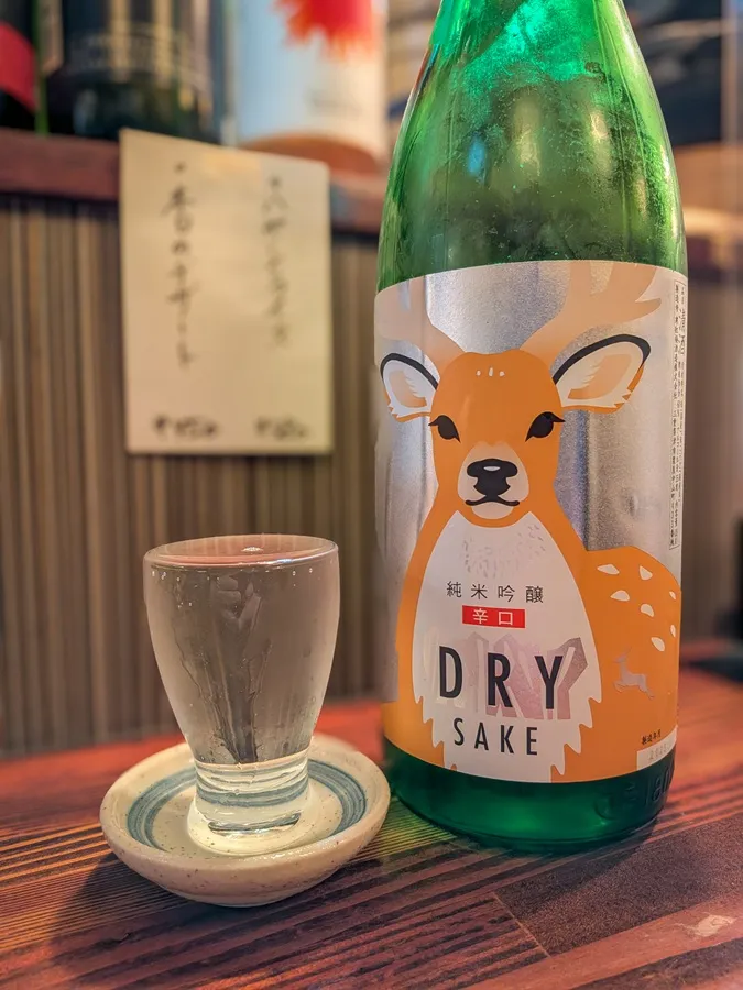 三重県『寒紅梅 純米吟醸 辛口 鹿 deer』、こちらもラベルが可愛い! 清涼感抜群!少し感じる発泡感にうっとりします。